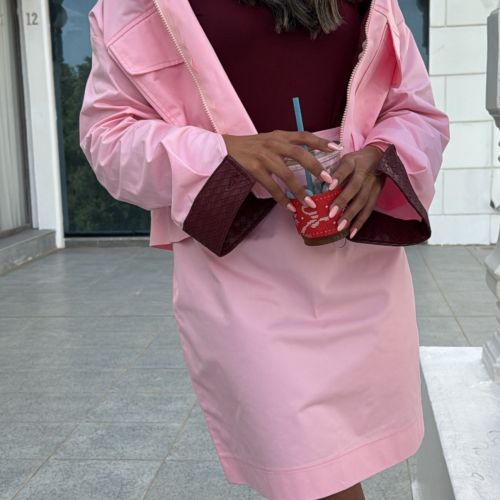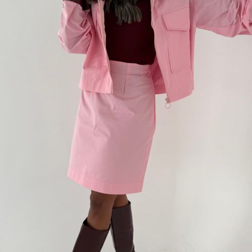 Description: A chic two-piece set featuring a cropped jacket with subtle leather details and a straight-cut skirt. Perfect for a modern, polished look—easy to style for work or outings with knee-high boots. Skirt length: 23 inches